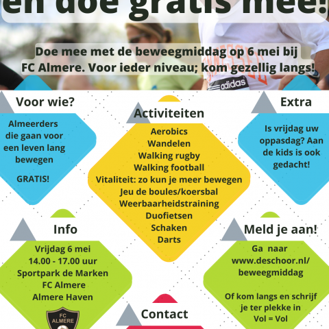 De Schoor organiseert een beweegmiddag op 6 mei